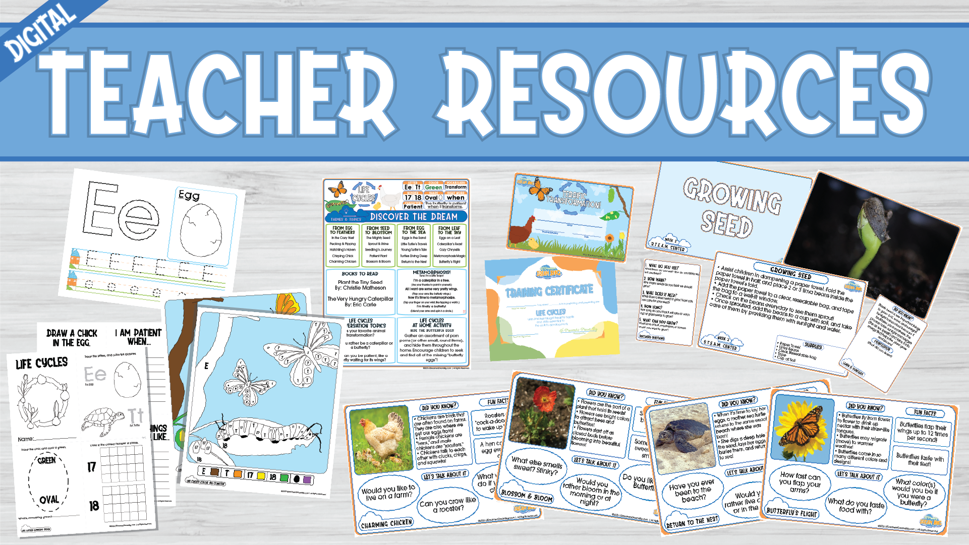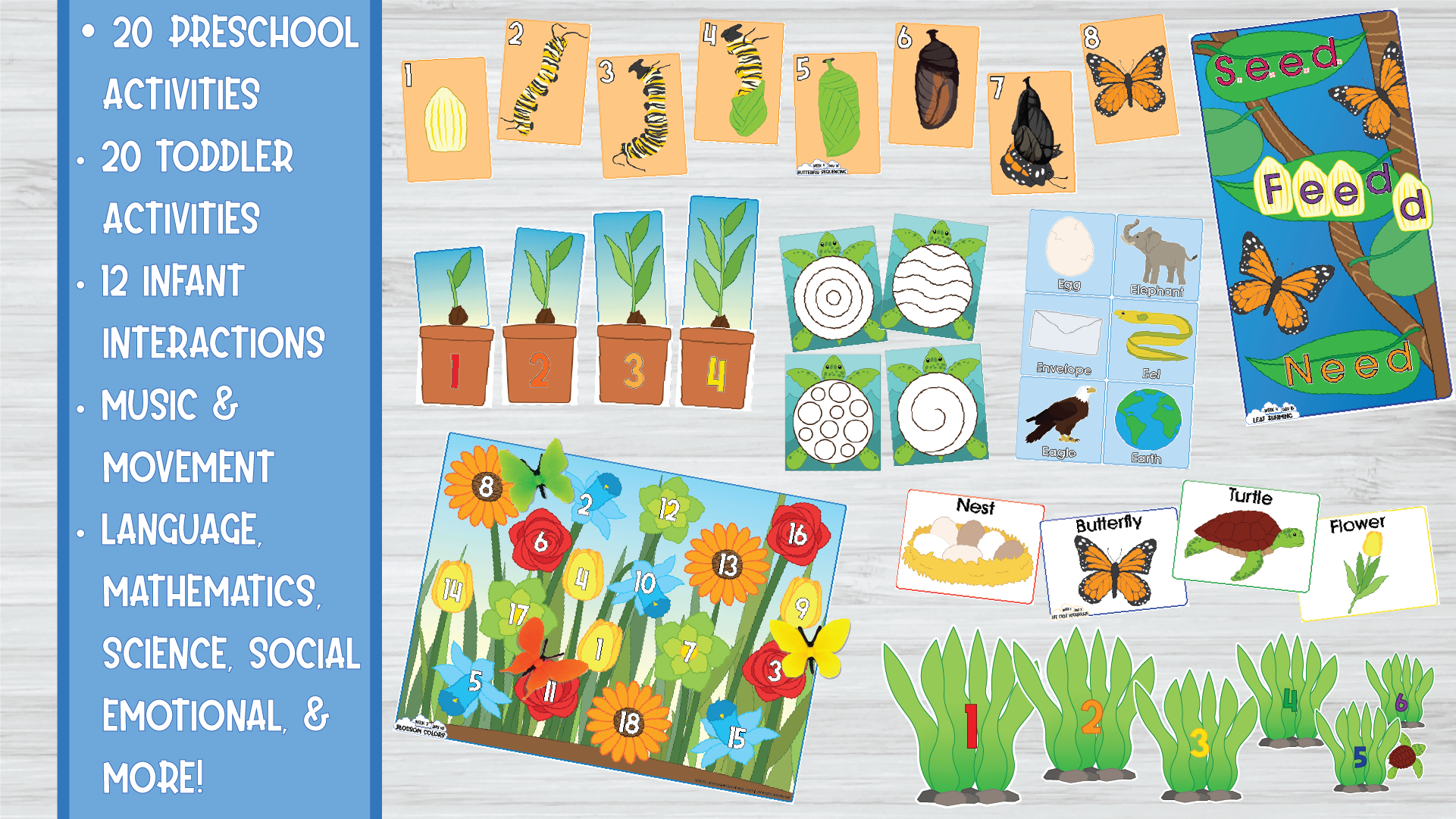 Teacher's Materials, Supplies for the number of children selected and Newsletter* included. From weekly topics to visual aides and concept display cards, each detailed lesson plan includes everything you need to journey through the months theme is PROVIDED for you.